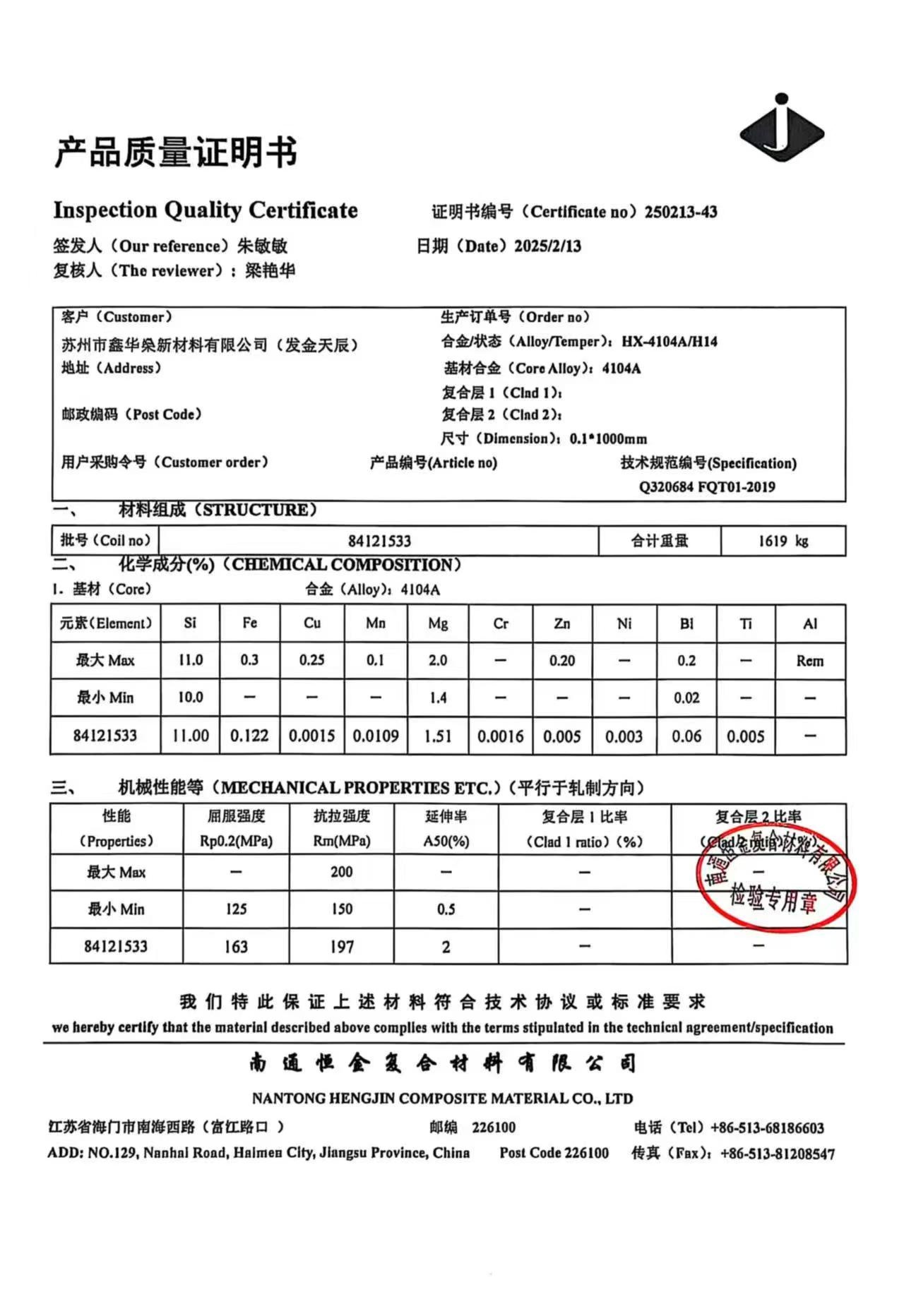 铝真空钎焊焊片-4104铝硅镁